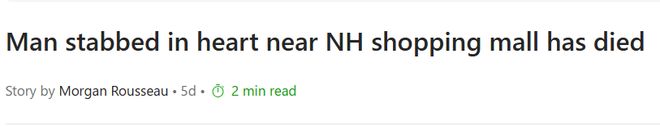 据新罕布什尔州媒体WMUR报道,案件发生在5月19日中午11时15分左右,地点为德里镇(Derry)Peabody Annex Road 4号一家商店外。当时警方接获报警称有人被刺伤,救援人员赶抵现场后,发现林贵身中多刀,倒卧街头。