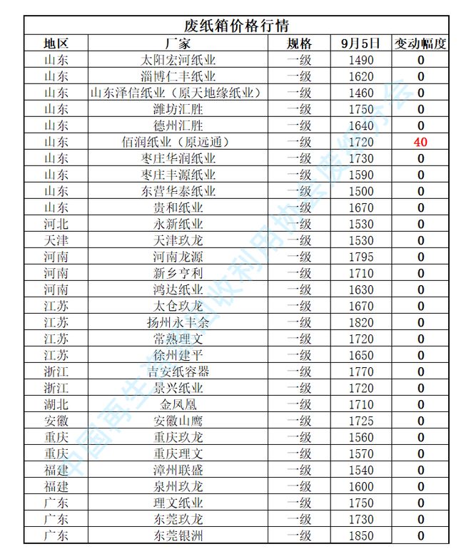 (以上价格表中,均为各纸厂价格,红色为上涨,绿色为下跌,黑色为纸厂或网友指正的价格) (新乡亨利价格为开具增值税普通的收购价格)